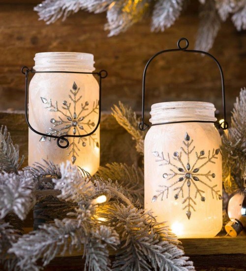 Knowing how to sew and knit can be a good advantage, but even if you don't know it, you can easily do it with these materials. If they ask you what is the most beautiful decorative object of the winter months, I think our answer would be snowball chandeliers and an elegant dining table ... if it is also snowing ... how would you like to make a candle with Christmas themed holders for the dining room table like me? Make a winter-themed candleholder from a jar.