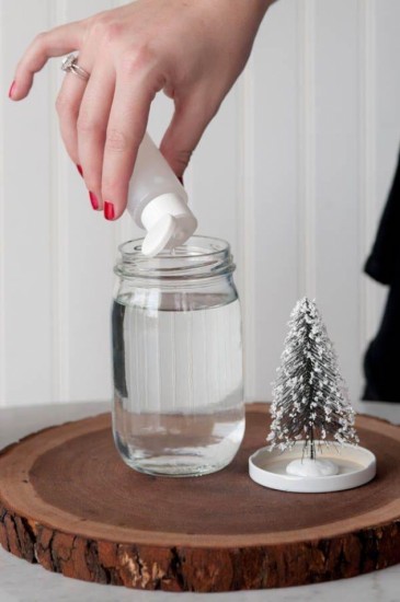 Before starting the process, first we wash and dry the glass jar well, because I'm sure you don't want it to leave a stain when the decoration is finished? After drying your jug, you can fill the jug with artificial snow as much as you like. In this section, you can decide the distance from the snow. Wouldn't it be nice if you put a miniature pine tree inside and a sleigh next to Santa Claus ...? You can create an atmosphere like snowing from the cover part with the help of fishing line and glue to make snowflakes as in the photo. When you use artificial snow, you don't need any additional glue, it just sticks where it touches. Later in this study, a little epson, bath salt, was also added on top of the snow. Necessary? Of course not, just a small detail of your preference :)