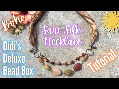 Hi everyone! Here's a very attractive double strand necklace using Sari silk ribbon and the lovely beads from Didi's Deluxe Bead Box for the month of September. In this video, I'll show you how to make beaded strands and then connect them to Sari ribbon. Enjoy!